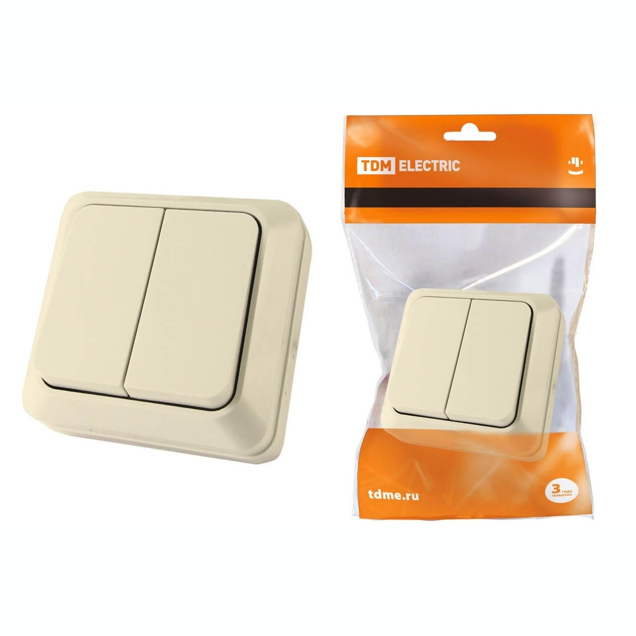 Вы можете купить Выключатель 2-кл. открытой установки IP20 10А, сл. кость Ладога TDM недорого в компании «Энергоснабмонтаж» – электрооборудование в Барановичах по доступным ценам.