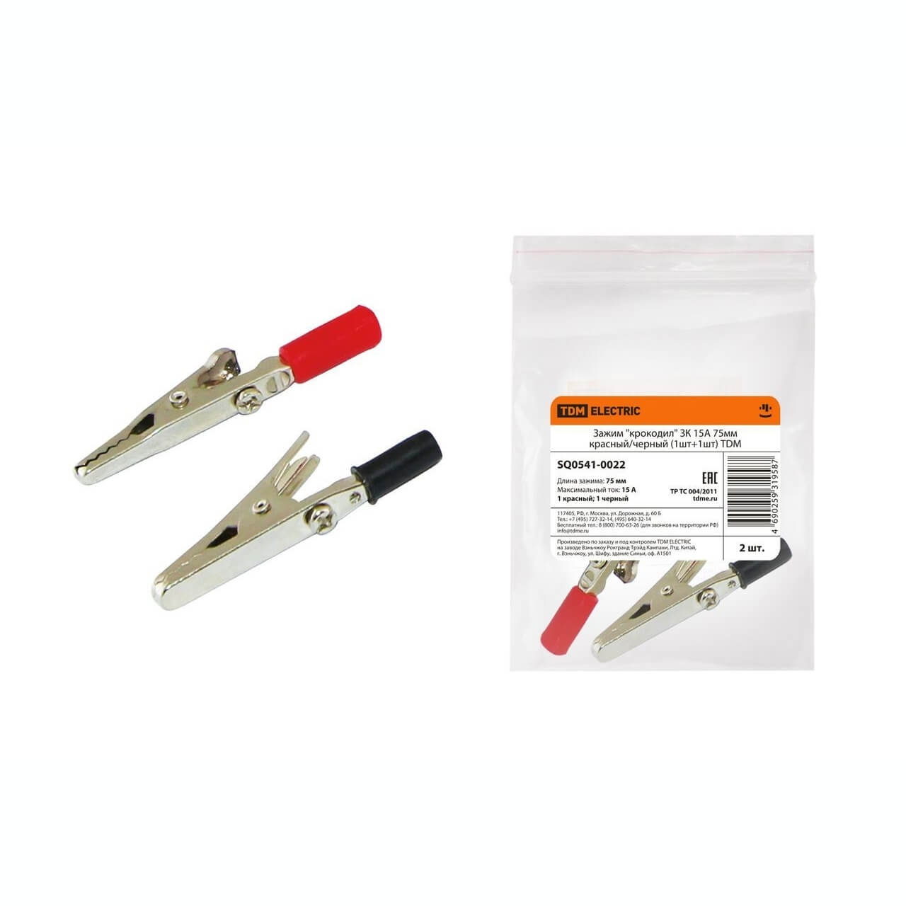 Зажим крокодил ЗК 15А 75мм красный/черный (1шт+1шт) TDM303635-1.jpg